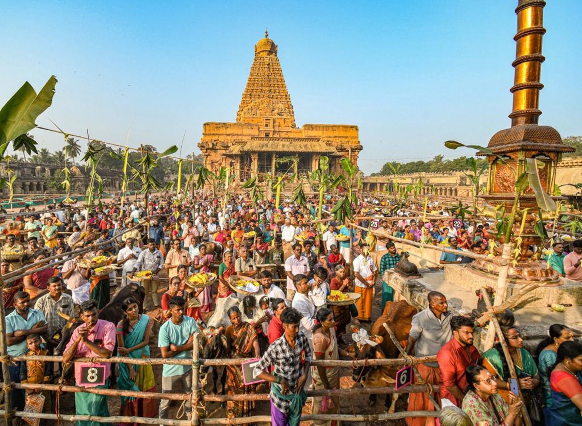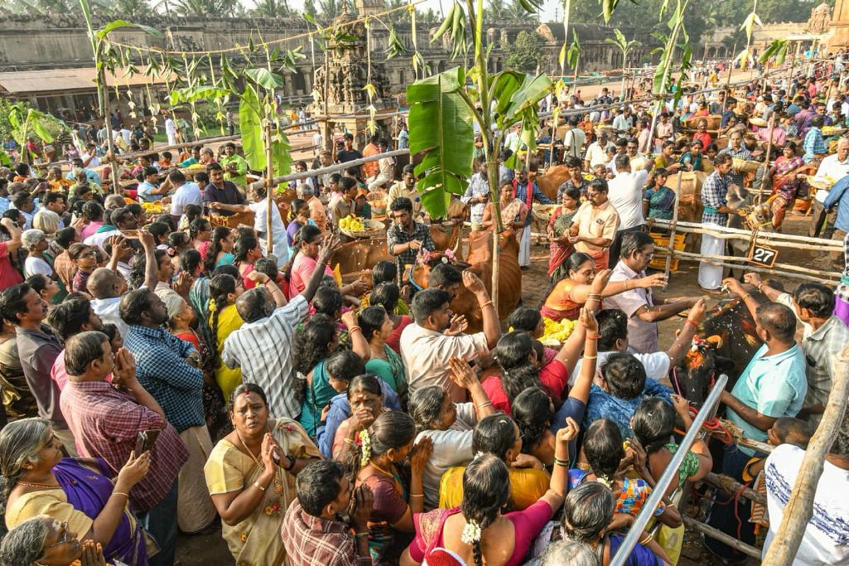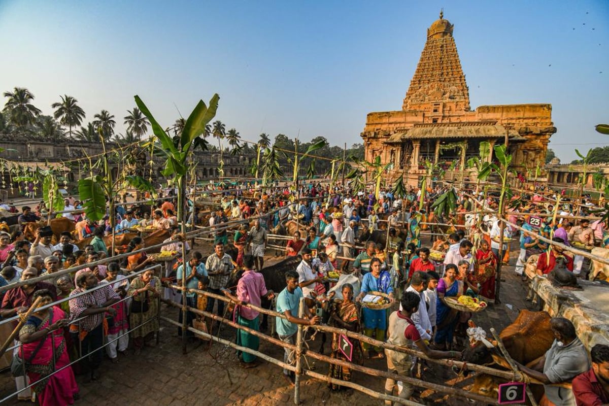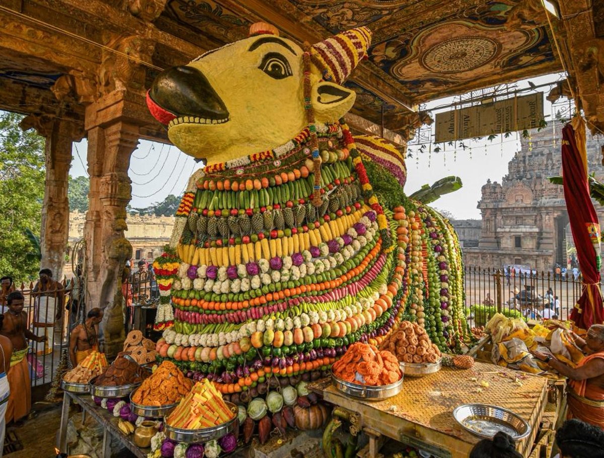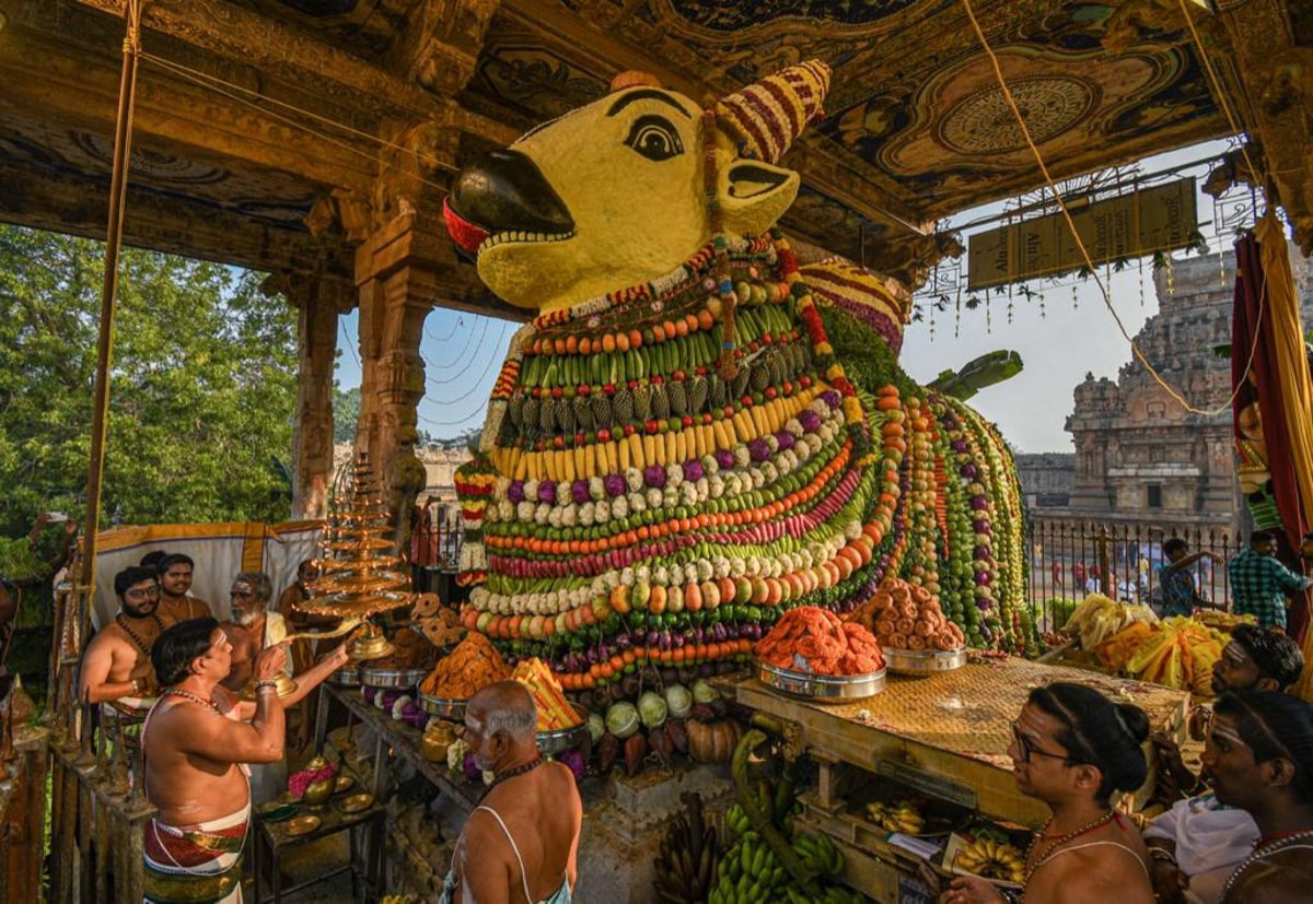 கண்கொள்ளா காட்சிகள்... 2,000 கிலோ காய், கனிகள்... தஞ்சை நந்தி பெருமானுக்கு சிறப்பு அலங்காரம்!