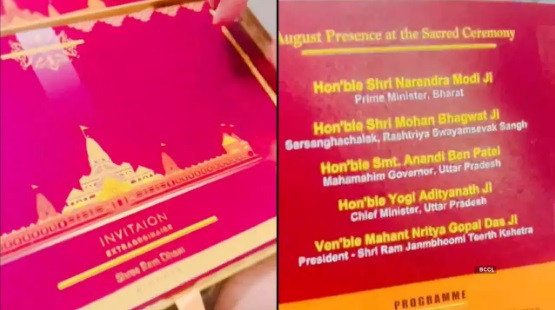 மேலும், ராமர் கோயில் சிலை பிரதிஷ்டையின்போது, பிரதமர் நரேந்திர மோடி, உத்தரப்பிரதேச முதல்வர் யோகி ஆதித்யநாத், ஆர்எஸ்எஸ் தலைவர் மோகன் பகவத், உத்தரப் பிரதேச மாநில ஆளுநர் ஆனந்திபென் படேல் மற்றும் அறக்கட்டளையின் தலைவர் நிருத்யா கோபால் தாஸ் ஆகியோர் கருவறைக்குள் இருப்பார்கள் எனவும் அழைப்பிதழில் குறிப்பிடப்பட்டுள்ளது. ராமர் கோயில் அழைப்பிதழ் தற்போது இணையத்தில் வைரலாகி வருகிறது.