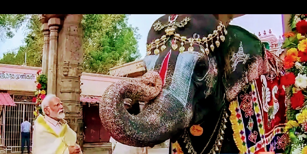 ஸ்ரீரங்கம் வந்திருந்த பிரதமர் மோடிக்கு ஸ்ரீரங்கம் கோயில் யானை ஆண்டாள், மௌத் ஆர்கன் வாசித்து வரவேற்பு கொடுத்தது. அதை அவர் மெய்மறந்து ரசித்தார்.