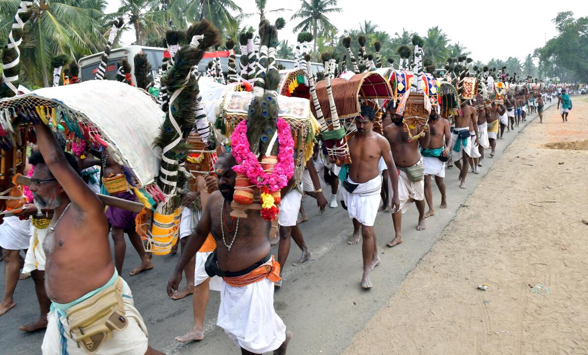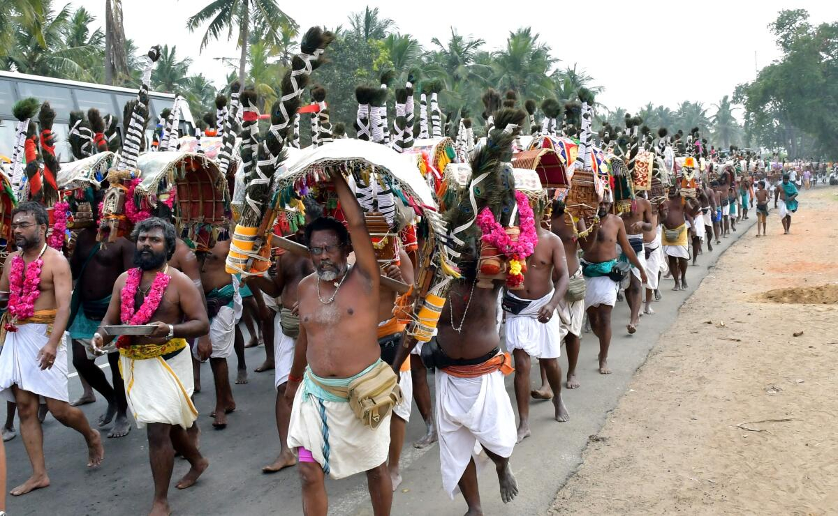 அந்த வழக்கத்தின்படி இந்த ஆண்டும் அவர்கள் தங்கள் காவடிப் பயணத்தைத் தொடங்கியுள்ளனர். காரைக்குடி, தேவகோட்டை, பள்ளத்தூர், ஆத்தங்குடி, கோனாபட்டு, கனாடுகாத்தான், கண்டனூர் உள்பட 96 ஊர்களைச் சேர்ந்த நூற்றுக் கணக்கானவர்கள் விரதமிருந்து காவடி எடுத்து நேற்று முன்தினம் குன்றக்குடி வந்தடைந்தனர்.