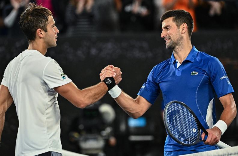 முதல் இரண்டு சுற்று போட்டிகள் நடந்து முடிவடைந்த நிலையில், இன்று மூன்றாம் சுற்று போட்டிகள் தொடங்கியது. இதில் ஆடவர் ஒற்றையர் பிரிவு ஆட்டத்தில் உலகின் நம்பர் 1 வீரரும், செர்பியாவை சேர்ந்தவருமான நோவா ஜோகோவிச் - அர்ஜென்டினாவின் தாமஸ் மார்டின் செவ்ரியுடன் மோதினார். முதல் இரண்டு செட்களை 6-3, 6-3 என எளிதாக வென்ற ஜோகோவிச் 3வது சுற்றை 7-6 என போராடி வென்றார். இதன் மூலம் 3-0 என்ற செட் கணக்கில் வெற்றி பெற்று கால்இறுதிக்கு முந்தைய சுற்றுக்கு முன்னேறினார்.